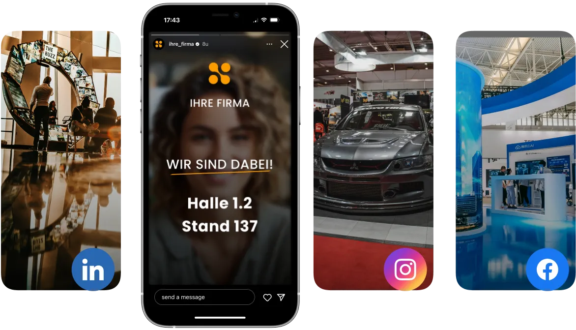 Strategisch geplante Social Media Beiträge, die speziell für die Phase vor der Messe konzipiert werden. Diese Beiträge generieren Interesse und Aufmerksamkeit, um Ihren bevorstehenden Messeauftritt hervorzuheben.