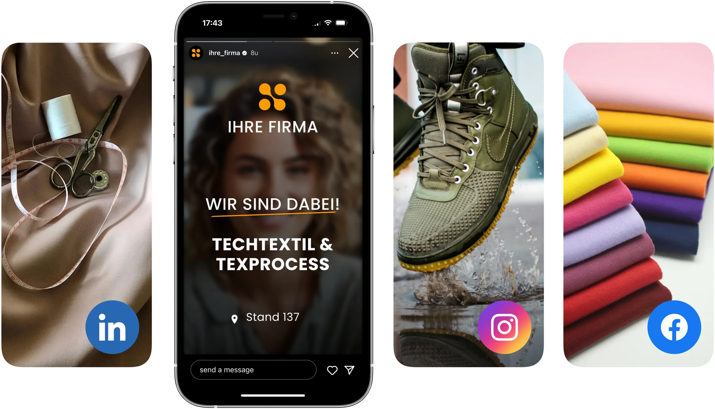 Strategisch geplante Social Media Beiträge, die speziell für die Phase vor der Messe konzipiert werden. Diese Beiträge generieren Interesse und Aufmerksamkeit, um Ihren bevorstehenden Messeauftritt hervorzuheben.